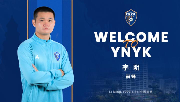 李明 1999.01.21 出生于湖南株洲 体重76KG 身高181CM场上司职前锋,出自广州恒大青训,曾多次入选国少国青,效力过广州队预备队、北京北体大、湖南湘涛、湖南广电芒果巴、江西黑马青年,李明体力充沛,身体强壮,突破能力强,相信李明有很快速融入球队,为云南玉昆队锋线提供强有力的补充。