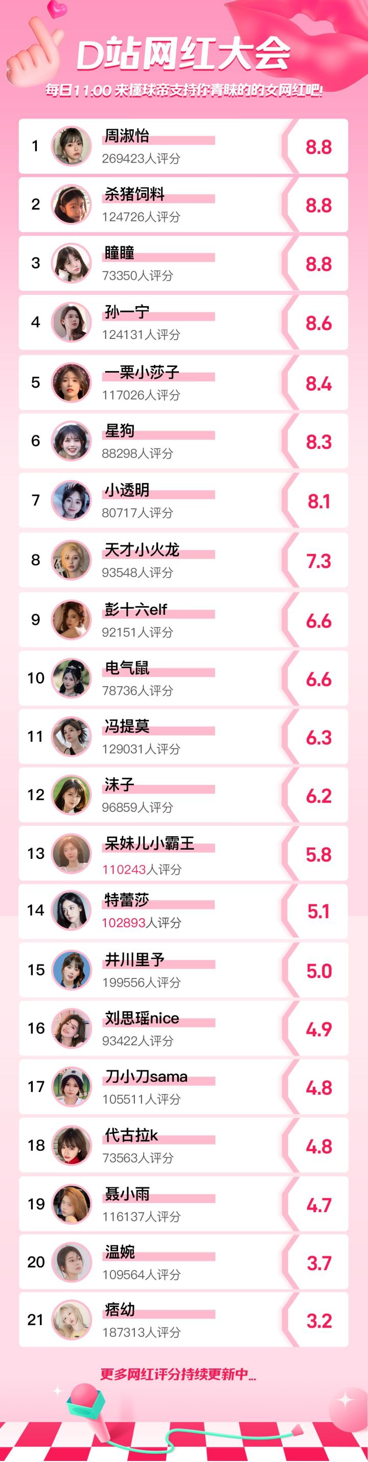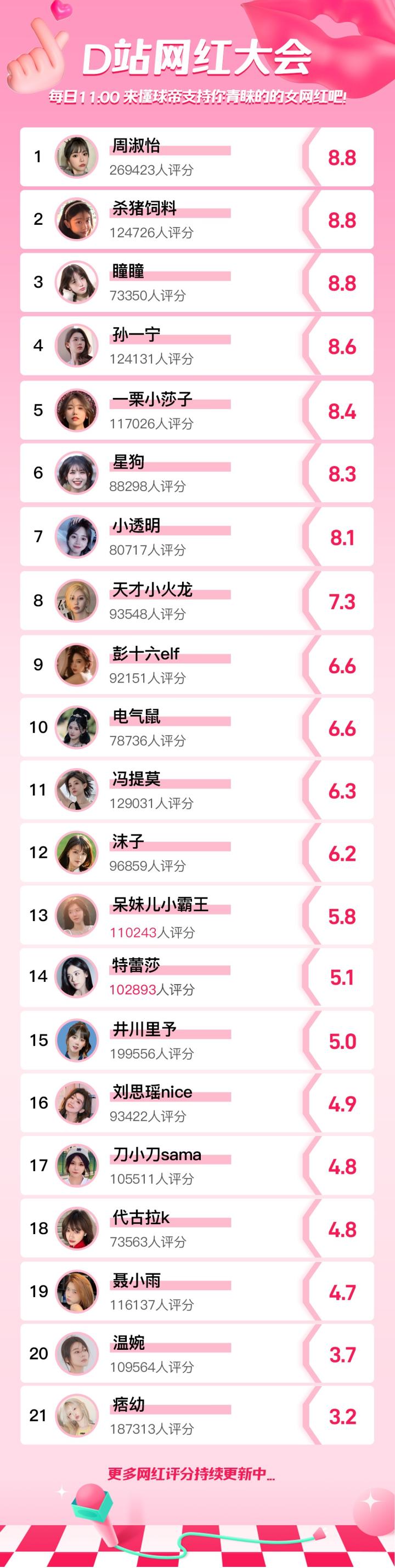 当前我懂老哥对各大网红们的喜爱值如下,谁最让你意外?你最中意的女网红是哪个?欢迎大家在评论区提名,活动君将会根据大家的提名结果判断采纳哦!