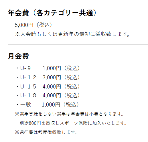 从图中可以如果是U9年龄段的球员每月的费用仅需1000日元(即50人民币)即使是U18,也仅需4000日元(即200人民币)。 球队的入会流程以及规章制度都在官网清晰可见,随时可以下载报名。