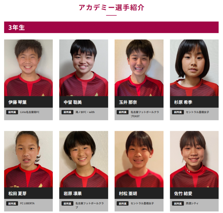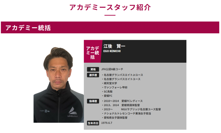 从日本名古屋女足的网站可以看到球队为女足学院准备了从门将教练到理疗师等的一系列准备,而目前名古屋女足也只是日本第二级别联赛的球队而已。