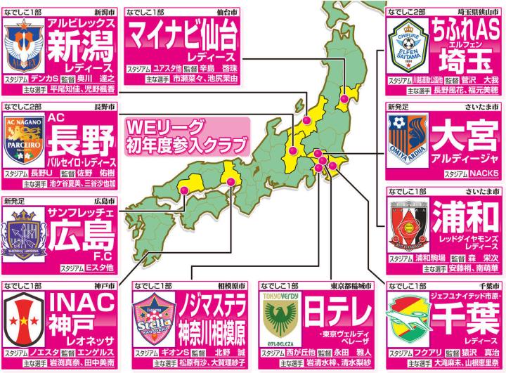 日本直到2021年,也就是两年前,才正式成立了真正的女子职业联赛,即WE联赛。而曾经的业余级别的日本女足最高级别联赛抚子联赛则成为了日本第二级别以及第三级别的挑战联赛构成。纵观日本的女足联赛的球队可以发现,WE联赛(顶级联赛)几乎都是有着职业男足俱乐部的球队,而作为第二级别的日本女子足球联赛则几乎都是纯女足俱乐部(即只有女子俱乐部的球队)。