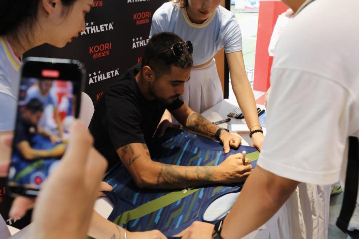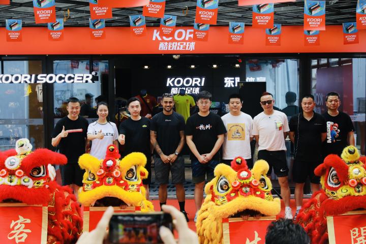 中超球员莱昂纳多来到现场剪彩并与球迷亲密互动,在中日韩三国联赛都有上佳表现的巴西球星参与了现场签售活动,并与在场的媒体和球迷分享了他的精彩足球生活。