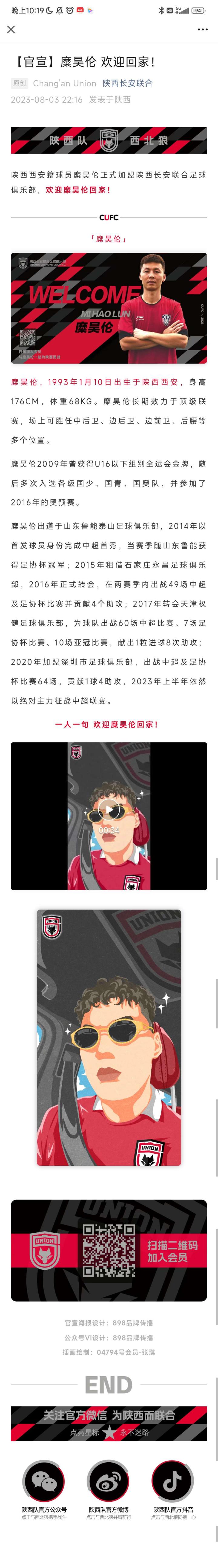 陕西长安联合官宣,糜昊伦加盟! 糜昊伦,1993年1月10日出生于陕西西安,中国足球运动员,司职边后卫。 2007年,2008年入选92年国少队 。 2009年代表山东参加全运会男足16岁以下组的比赛,获得金牌。 2010年入选93年国青队,2015年入选93国奥队。曾效力于山东鲁能泰山足球队,山东鲁能泰山预备队。 2016年正式转会石家庄永昌足球俱乐部 。 2017年1月转会天津权健足球俱乐部。 2020年,加盟深圳足球俱乐部。 2023年8月,加盟陕西长安联合足球俱乐部!