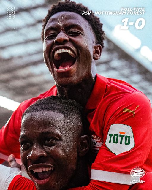 PSV埃因霍温PSV 以 1-0 的比分战胜了英超球队诺丁汉森林俱乐部(Nottingham Forest FC),为季前备战画上了圆满的句号。约翰-巴卡约科(Johan Bakayoko)在第 66 分钟为PSV攻入制胜一球。