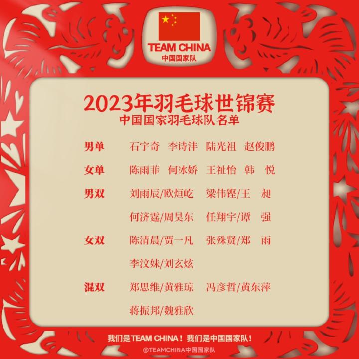 2023羽毛球世锦赛中国队名单:雅思组合、陈清晨/贾一凡领衔
