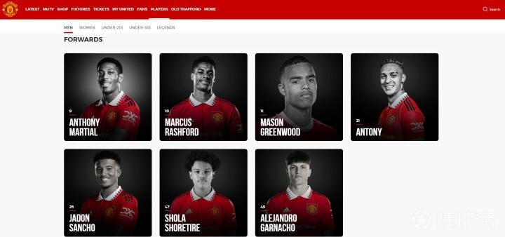 前锋:9-马夏尔、10-拉什福德、11-格林伍德、21-安东尼、25-桑乔、47-肖泰尔、49-加纳乔