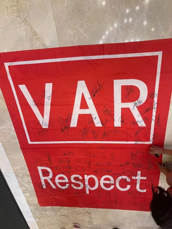 不满意!成都蓉城全队及球迷在一张“尊重VAR”的标语上签字