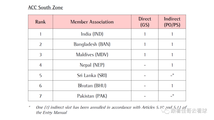 南亚区:3队直接进入正赛,5队参加资格赛争夺1个正赛名额