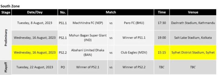 印度(1+1):奥迪沙(正赛,2021–22印度足球甲级联赛冠军与2023印度超级杯冠军之间附加赛胜方),莫亨巴甘(资格赛,2021–22与2022–23印度超级联赛冠军之间附加赛胜方)