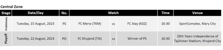 塔吉克斯坦(1+1):拉夫尚(正赛,联赛亚军),苦盏(资格赛,联赛季军)