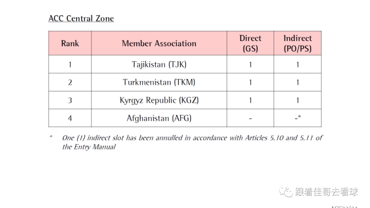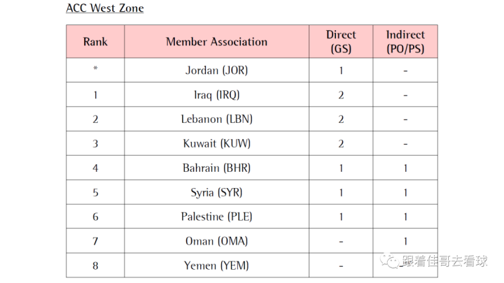 中亚区:3队直接进入正赛,3队参加资格赛争夺1个正赛名额