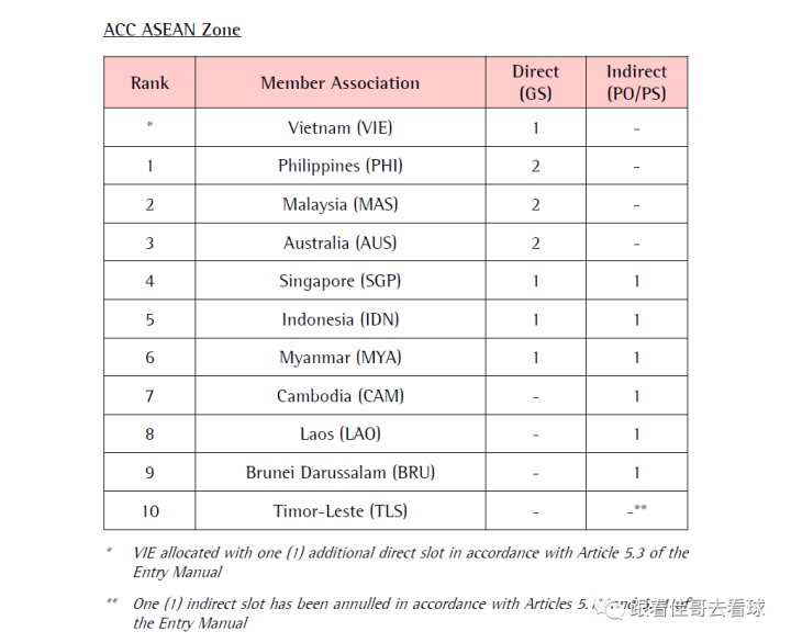 东南亚区:10队直接进入正赛,6队参加资格赛争夺2个正赛名额