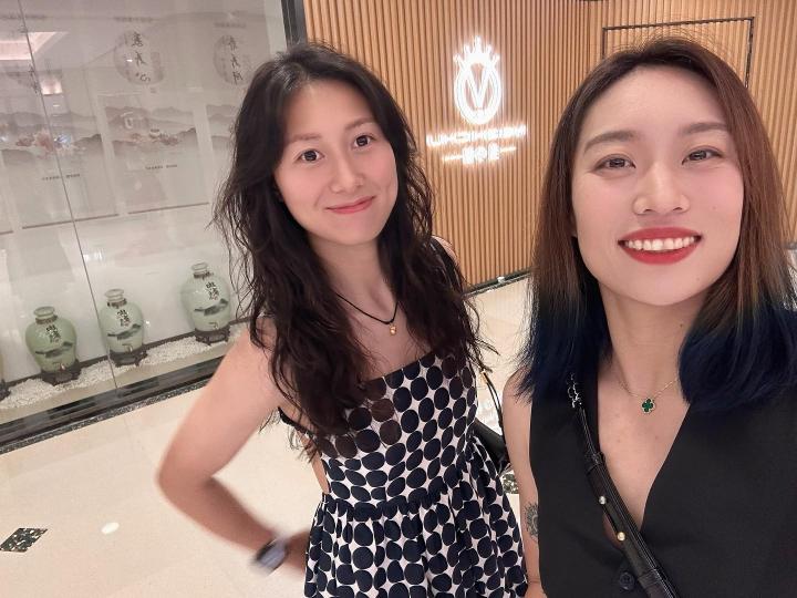 唐佳丽和沈梦雨逛街自拍,两人小露性感。
