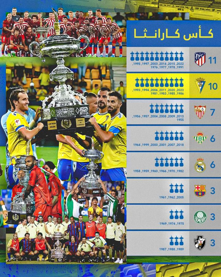卡兰萨杯历史:马竞11次夺冠,皇马塞维贝蒂斯获得多次冠军