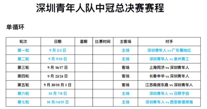 抽签结果显示,深圳青年人所在的A组还包括日照宇启、泉州青工、长春申华、江苏南房东晟、广东蜀地红、西安崇德荣海、上海同济。