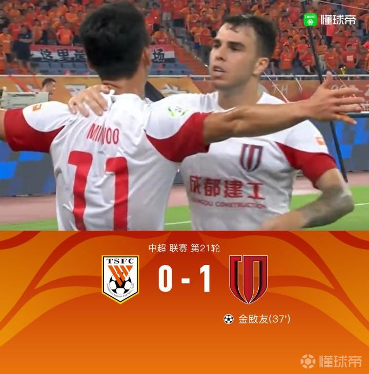 第37分钟,成都蓉城反击,帕拉西奥斯长途奔袭后传中送出助攻,金敃友推射破门,成都1-0山东!