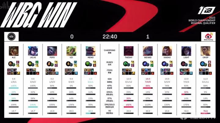 WBG首发:TheShy、Weiwei、Xiaohu、 Light、Crisp