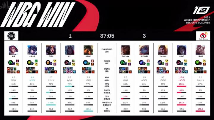 电竞赛事战报英雄联盟2023LPL夏季赛资格赛EDG vs WBG(BO5),EDG 1-3 不敌WBG,Uzi无缘世界赛。