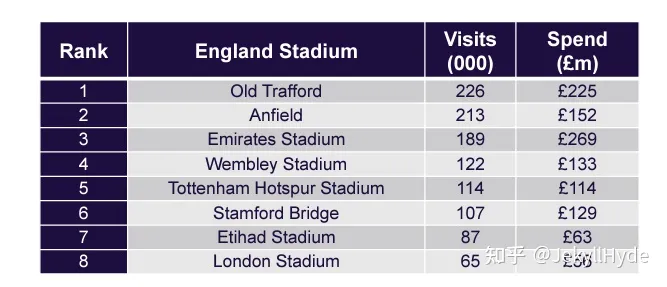 其中,最吸金的是曼联主场老特拉福德。2019年,一共吸引了226000名游客,创造了2.25亿的收入。