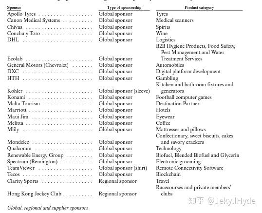 我们可以看到曼联的赞助商有做轮胎的、医学扫描仪的、酒的、厨卫的、游戏的...