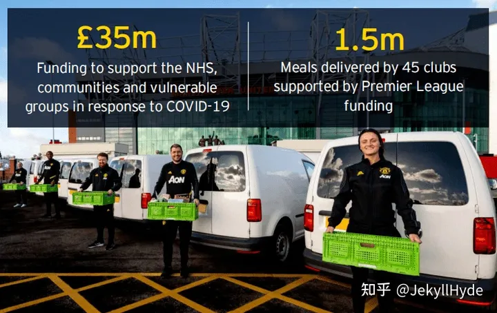 如在疫情期间,整个英超联赛累计向英国卫生部门、社区和社会团体捐赠了约3500万英镑,提供了150万份膳食。在抗击疫情中,发挥了体育界的社会公益作用。