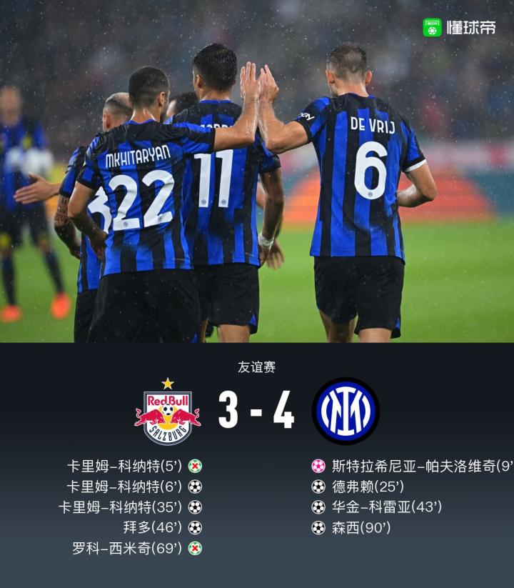 国米4-3萨尔茨堡红牛,森西绝杀,科纳特、西米奇均失点