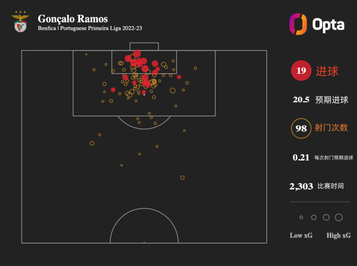 这意味着,贡萨洛的射门无论是在数量还是质量上都无可挑剔。