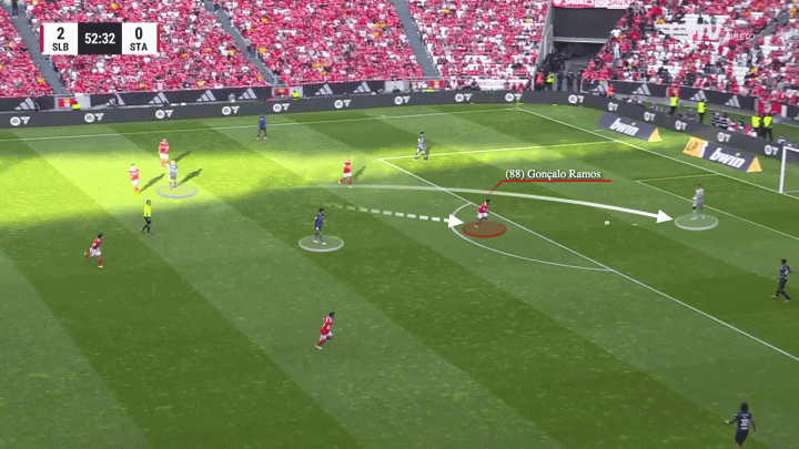 在本菲卡上赛季最后一场联赛对阵圣克拉拉的比赛中,贡萨洛很聪明地将对手引到了他预先设想的区域。