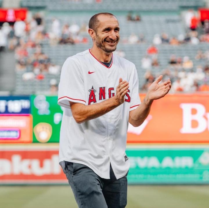 北京时间8月10日,洛杉矶FC队晒出了一组基耶利尼的照片。“椰子”为同城的棒球球队洛杉矶天使队开球。