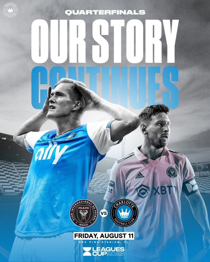 8月11日,迈阿密国际将在联赛杯1/4决赛对阵夏洛特FC。你的俱乐部在这场比赛的宣传照中放上了希维德尔斯基和梅西,两个人都有很棒的左脚。