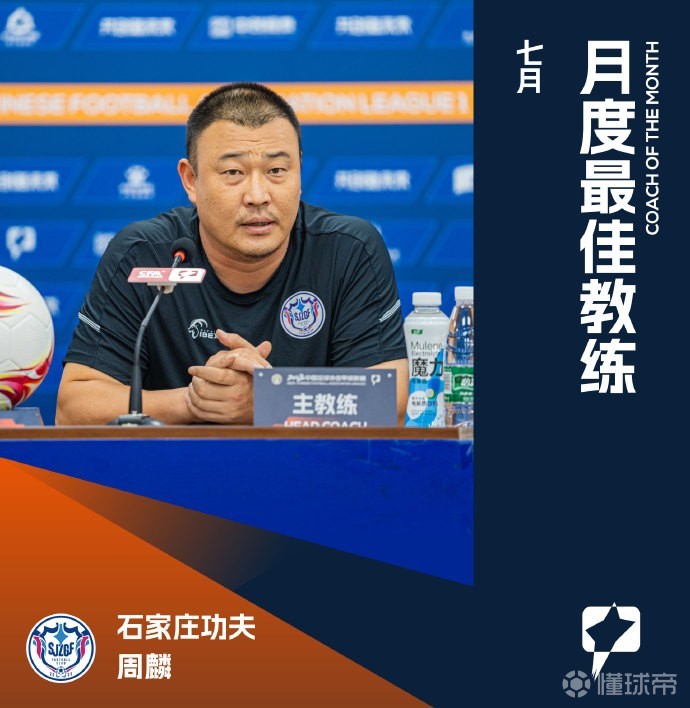 满分当选!中甲7月最佳教练:石家庄功夫队主帅周麟