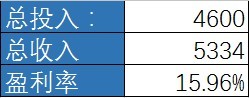 整体统计下来,总投入4600元,总收入5334元,盈利率15.96%.(如果你在懂球帝足彩充值中心充值,还可以额外拥有3%的折扣。盈利率就从15.96% 提高到了18.96%!)