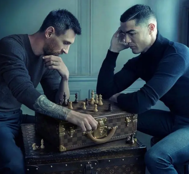 世界杯前,梅西曾与C罗隔空合体,为LV拍摄了一个对弈国际象棋的经典广告,两人总计费用370万美元,其中C罗因为社媒粉丝多,拿了200万,梅西有170万。