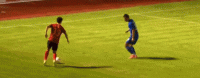 第72分钟,高嘉润与卡哈尔曼争抢头球过程中撞到一起