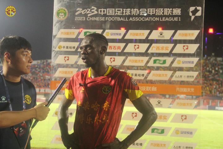 广西平果哈嘹埃沃洛获评本场比赛的最佳球员,他接受采访时表示:“拿到这个荣誉很高兴,进球让我很兴奋,我把进球献给我的女儿和队友们。感谢了俱乐部和队员的支持,教练团队的教导,并再次感谢广大球迷对我的支持。”
