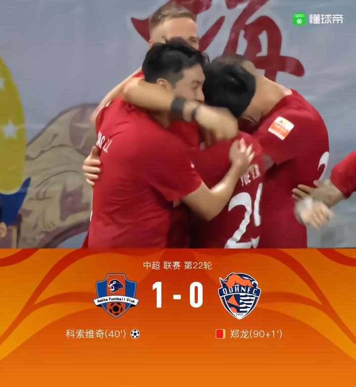 梅州客家1-0青岛海牛,科索维奇推射制胜,郑龙染红