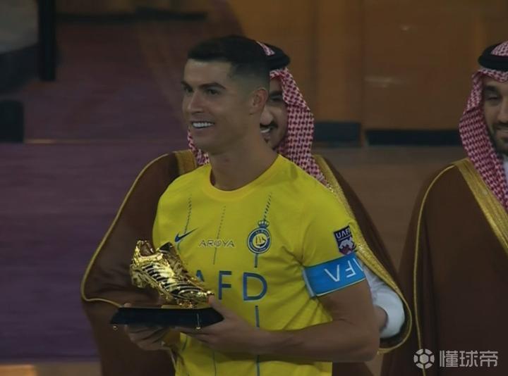 阿拉伯俱乐部冠军杯决赛,利雅得胜利通过加时赛2-1击败利雅得新月夺冠,此役上演梅开二度的C罗以6球荣膺2023阿拉伯冠军杯最佳射手,并在赛后领取金靴奖。