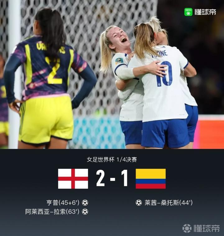 【蒙牛战报|英格兰女足2-1逆转哥伦比亚女足晋级4强,拉索制胜】