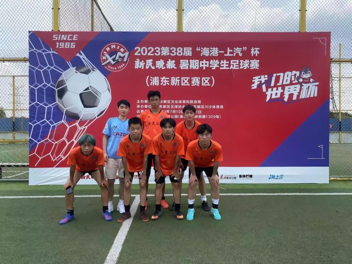 在率先开打的八人制男子中学组比赛中,球队与绿洲队、洋泾中学、帅哥马德里同分D组。三场小组赛中球队兵不血刃轻松拿下对手。随后在紧张刺激的淘汰赛中球队先后淘汰浦东奥力给、进北希望与阿瑞斯挺进决赛。在最后的决赛中球队在常规时间内1比1与文来中学握手言和,比赛进入点球决战。最终张伊恒、杨一航、李金东、杨焯钧、程一凌分别稳稳罚进,向沪东扑出对方最后一点,最终球队总比分6比5战胜文来中学,捧得新民晚报杯八人制冠军。
