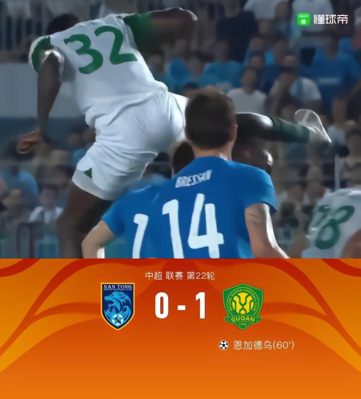 【北京国安1-0南通支云,恩加德乌凌空飞踢制胜,张稀哲献助攻】