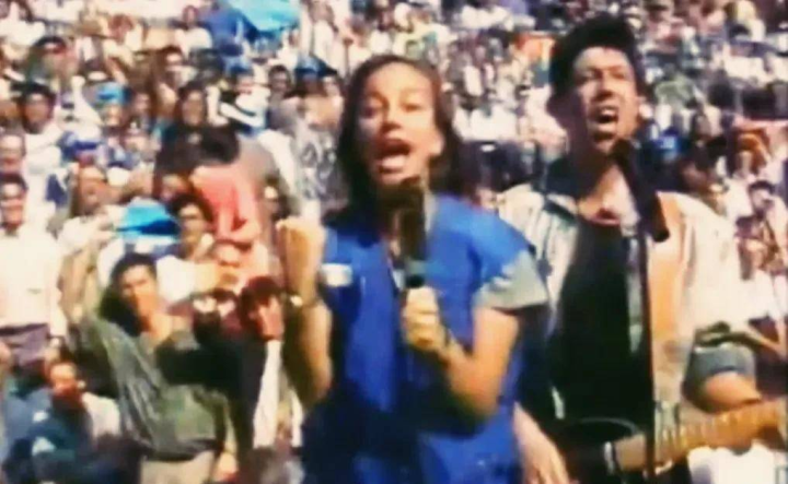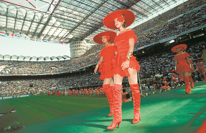 (1990年意大利世界杯开幕式中走秀的模特与正在演唱的歌手)