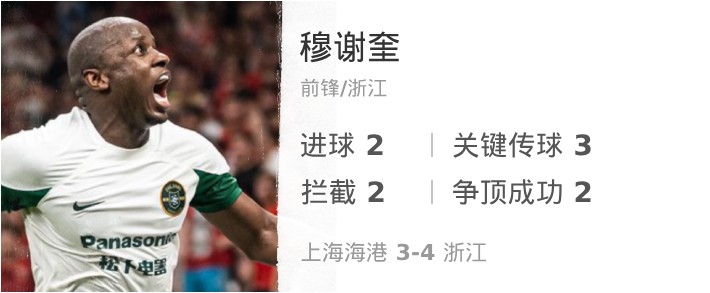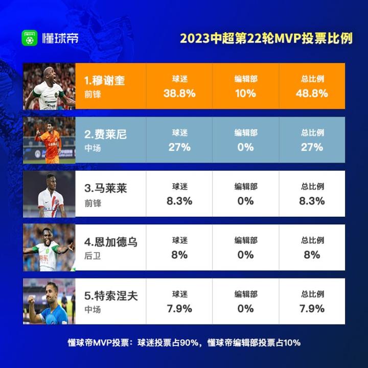 懂球帝2023赛季中超第22轮MVP:穆谢奎懂球帝中超MVP2023-08-15 15:02大家好,欢迎来到懂球帝中超MVP评选现场。中超第22轮MVP是:浙江队前锋——穆谢奎!与上海海港的比赛,穆谢奎梅开二度,在比赛读秒阶段补射绝杀,帮助浙江4-3赢下这场进球大战。综合球迷和编辑部投票,他当选本轮MVP。穆谢奎精彩表现投票比例其他提名球员本赛季中超MVP回顾展开更多