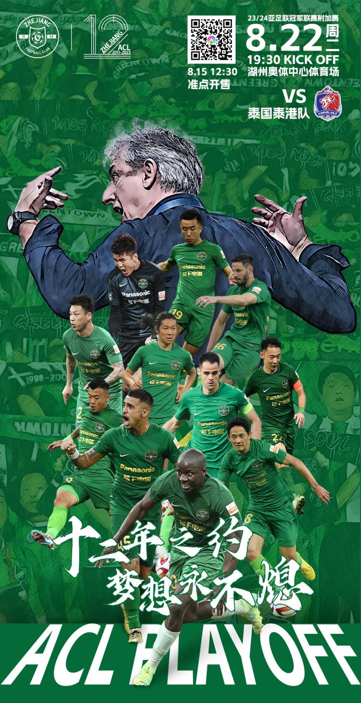 浙江队发布亚冠海报:十二年之约;15日中午12:30开售球票後奕辰 @懂球帝2023-08-15 11:01北京时间8月15日,浙江队官方发布亚冠海报,标题为十二年之约,梦想永不熄。浙江队官方发布亚冠海报,标题为十二年之约,梦想永不熄。浙江队已经进入亚冠时间,8月15日12:30,亚冠附加赛球票正式开售。北京时间8月22日晚19:30,浙江队将坐镇主场迎战泰超球队泰港队。展开更多