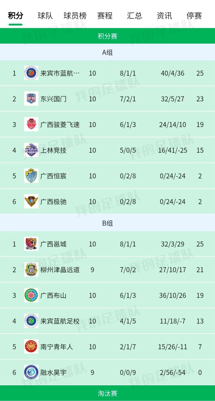 此役过后,广西邕城8胜1平1负进32球失3球,积25分,提前锁定B组第一。