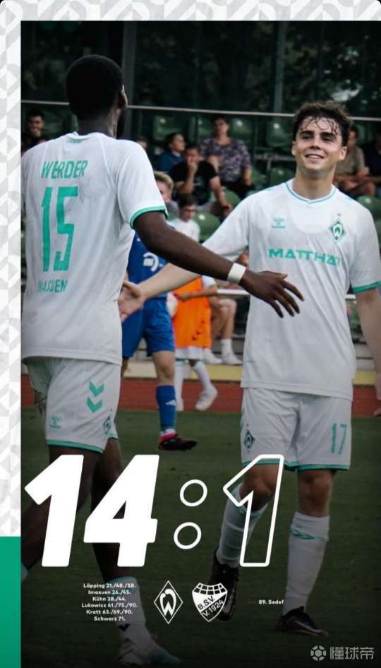 德高 云达不莱梅二队14-1布林库姆,中国球员王...Ansu-法蒂 @懂球帝2023-08-16 08:26德高 云达不莱梅二队14-1布林库姆,中国球员王博文未进名单,李贤成第57分钟替补登场展开更多