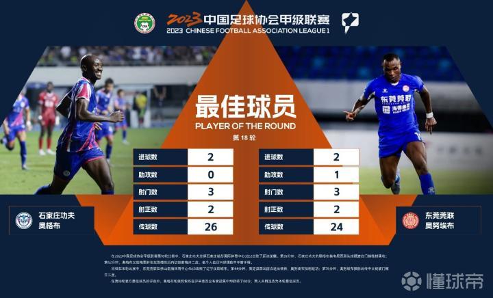中甲官方:奥格布和奥努埃布共同当选第18轮最佳球员