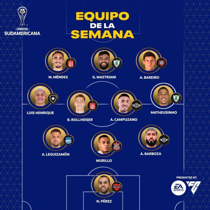 在晋级附加赛第二回合中,两名射手:拉普拉塔大学生中锋毛罗-门德斯与美洲中锋贡萨洛-马斯特利亚尼携手入选最佳阵容。