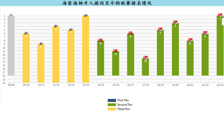 海登海姆凭借上赛季德乙最后7轮联赛只有一场失利的强势表现夺得了球队历史上的首个德乙冠军,从德丙冠军到德乙冠军,海登海姆人用九年时间实现了站上德甲的梦想。