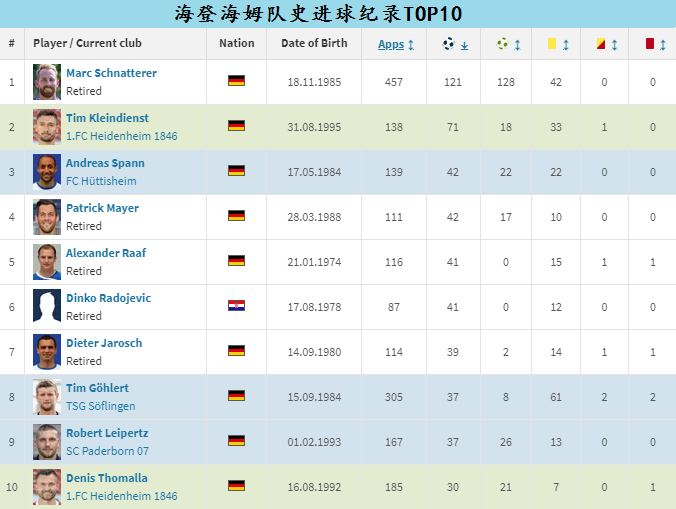 克莱因丁斯特已经连续三个赛季可以在德乙中进球上双,这名27岁的德乙金靴在新赛季依旧是海登海姆保级路上的攻城锤。