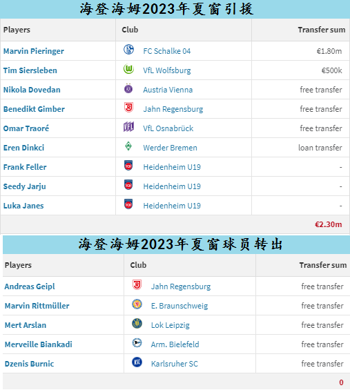 截至笔者发稿前,海登海姆在今年夏天仅投入了230万欧元的引援资金,其中从沙尔克04引进的派林格花费了球队180万欧元。